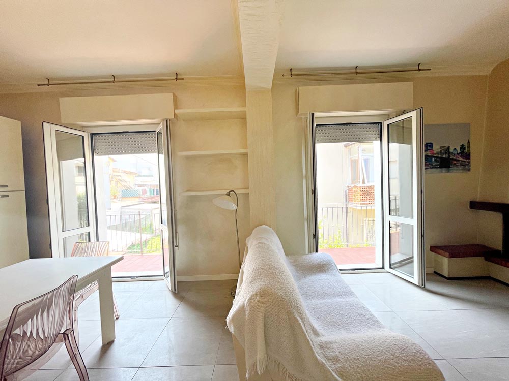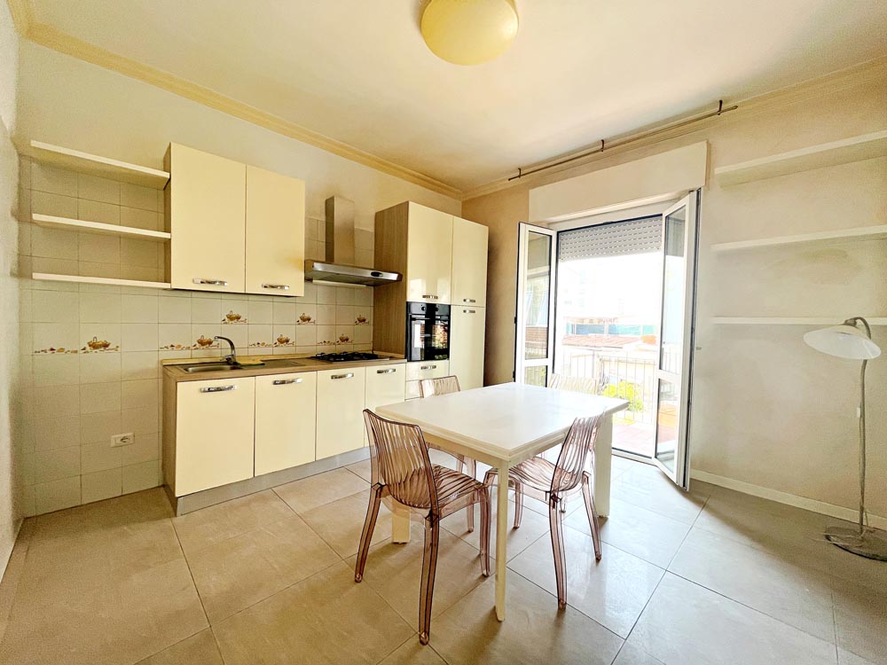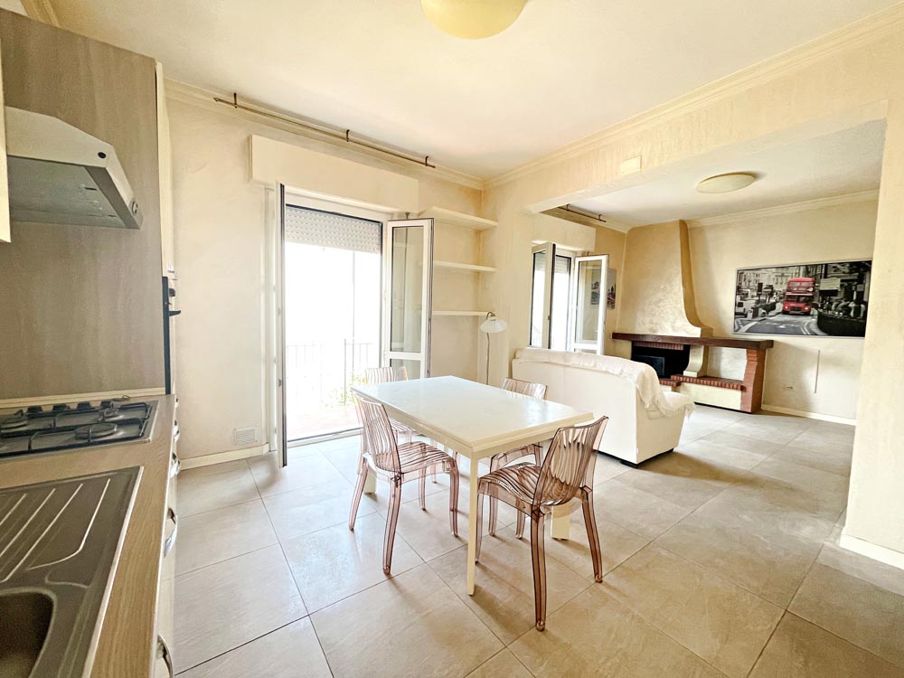 Ingresso su ampio soggiorno luminoso con spaziosa cucina, balcone abitabile ideale per mangiare all’aperto.