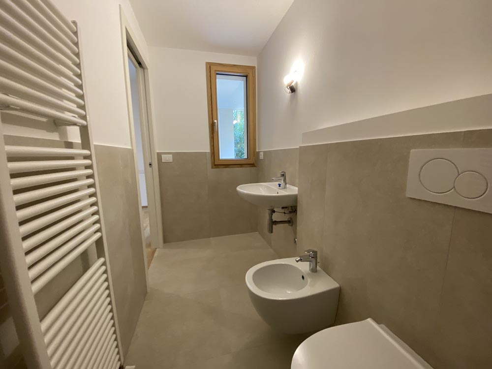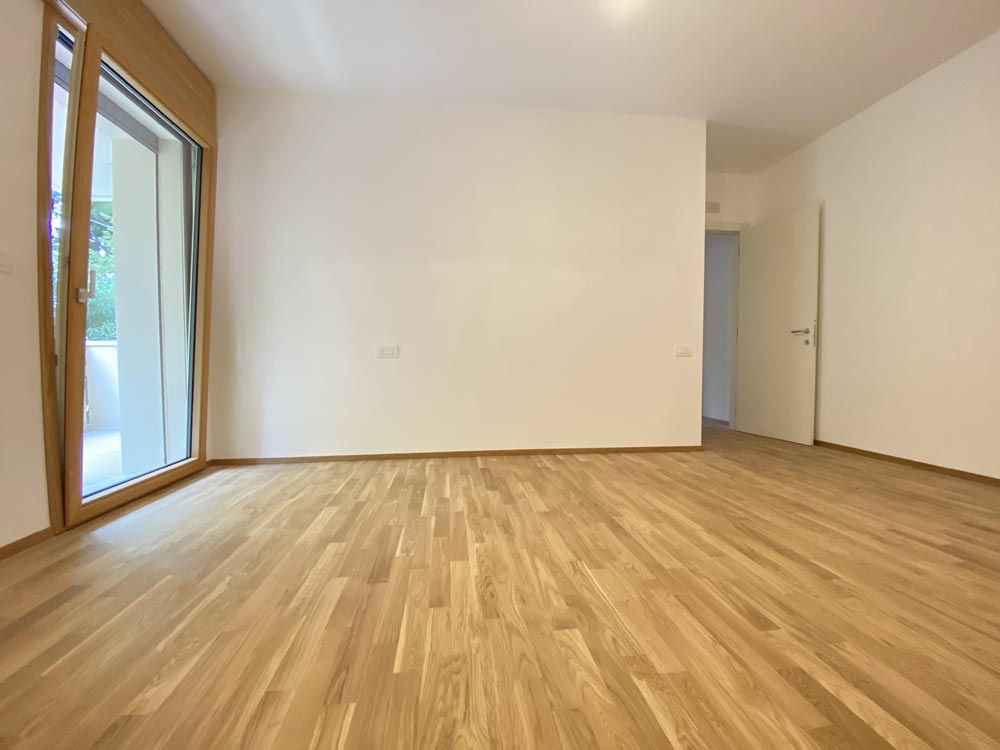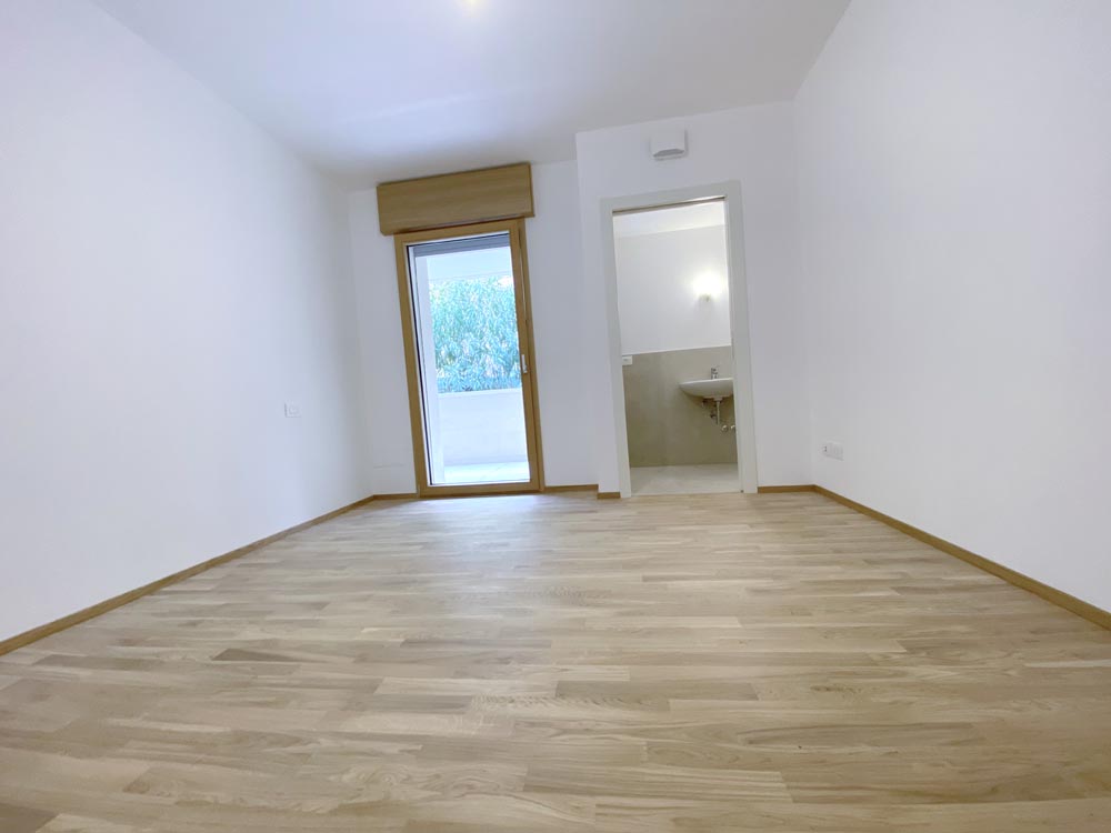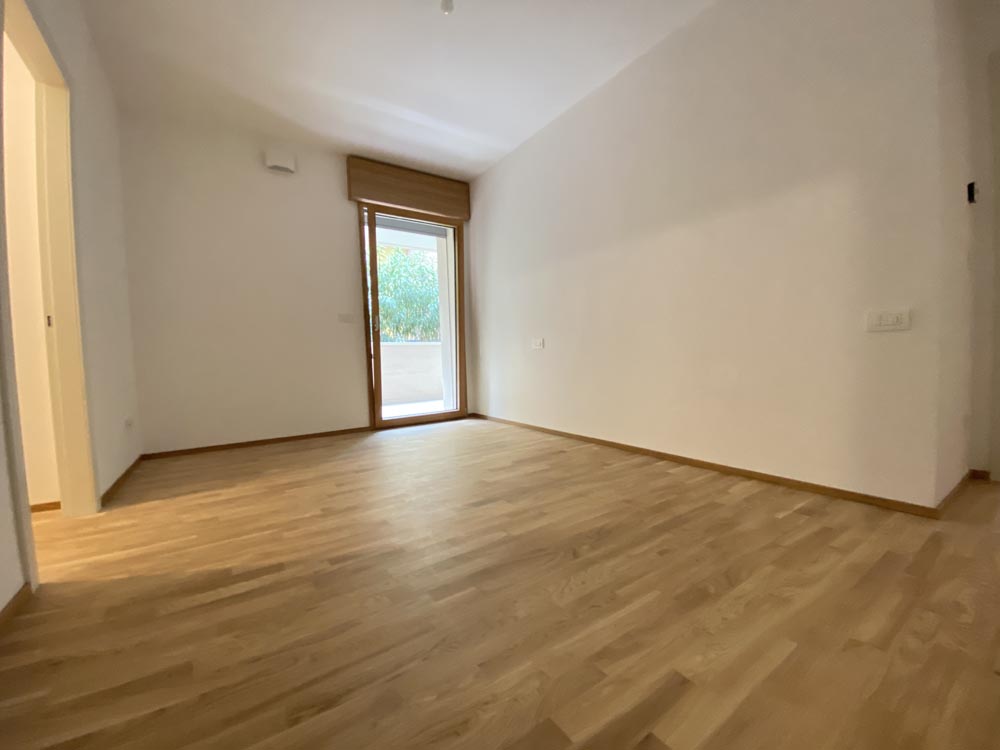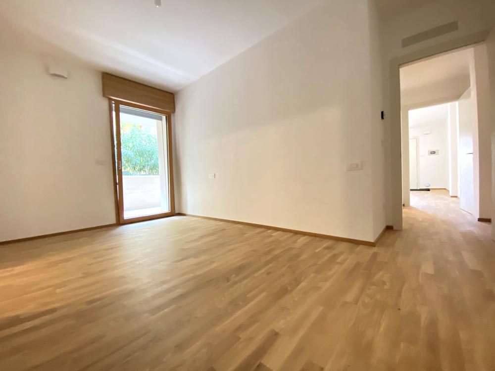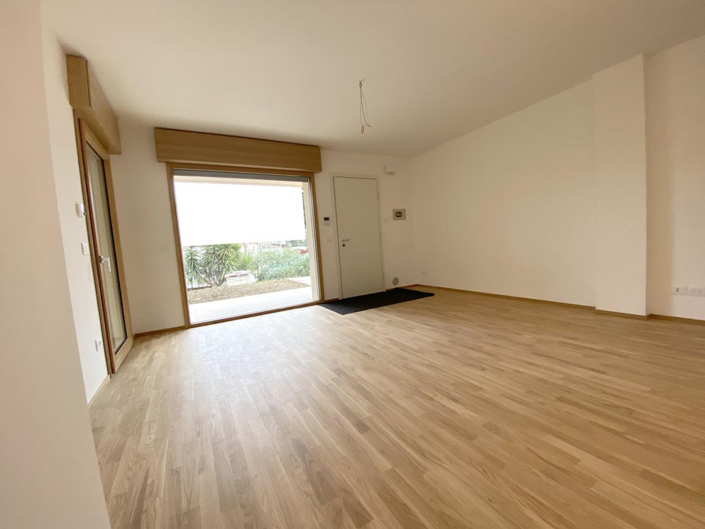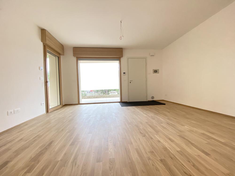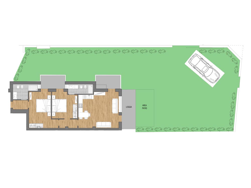 Appartamento posto al piano terra con ingresso indipendente, internamente composto da ingresso su ampio soggiorno con cicina a vista, affacciato su uno spazio loggiato che si collega al giardino privato ideale per trascorrere momenti di relax, 2 camere matrimoniali, due bagni  un posto auto all’interno della corte e una cantina al piano seminterrato.