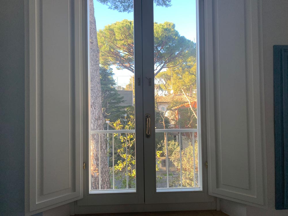 DISPONIBILITA’: STAGIONE 2024Appartamento in villa con parco nel cuore della zona Abissinia ubicata a pochissimi passi da viale Gramsci e dal mare, l’appartamento è stato recentemente ristrutturato e dispone di porta blindata, l’accesso avviene attraverso un corridoio distributivo che divide la zona giorno dalla zona notte. La parte più romantica della casa è la zona giorno composta da due ambienti distinti: una cucina in linea e una zona pranzo che affacciano ambedue su una terrazza di ampio respiro porticata così che è garantito l’uso anche in giornate uggiose. la zona notte si compone di tre camere matrimoniali molto spaziose di cui una con bagno en suite, due camere singole ed altri due servizi. Ogni ambiente dispone di aria condizionata. Corte esterna, due posti auto. Lavatrice, lavastoviglie, aria condizionata, ristrutturato da poco. ideale per nuclei famigliari numerosi! n° complessivo ospiti 8 persone – No Animali –
