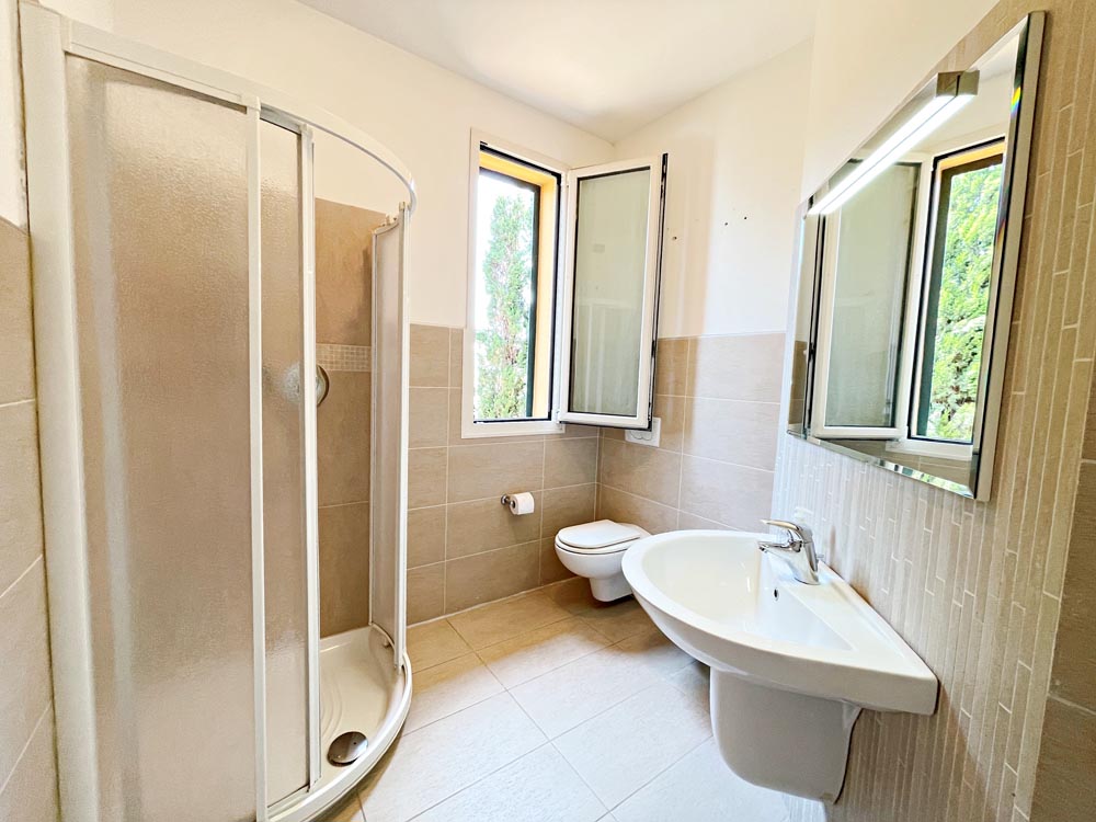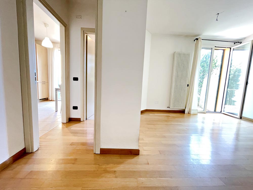 Ingresso su ampio living molto luminoso con delizioso balcone affacciato sul verde, cucina abitabile anch’essa con balcone, bagno finestrato con box doccia ed a seguire vano lavanderia dedicato.