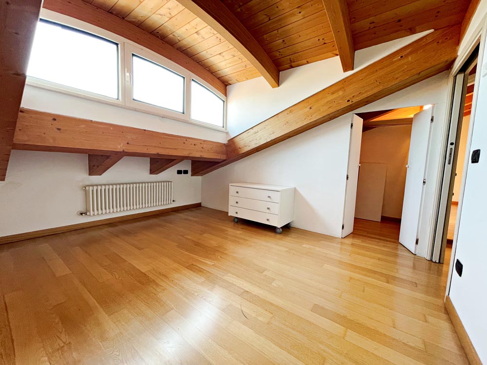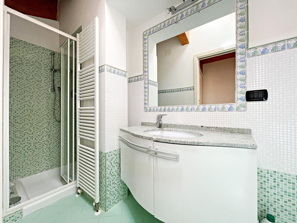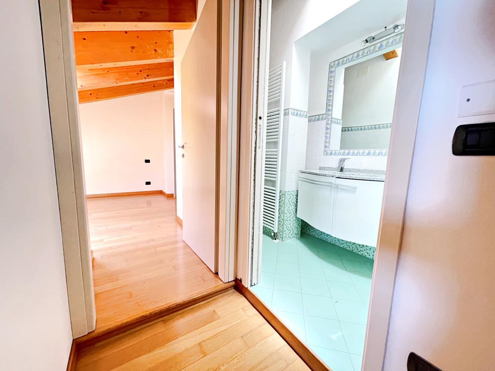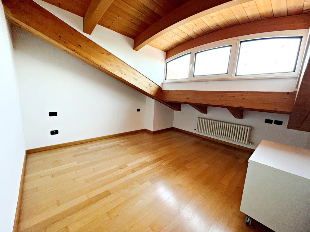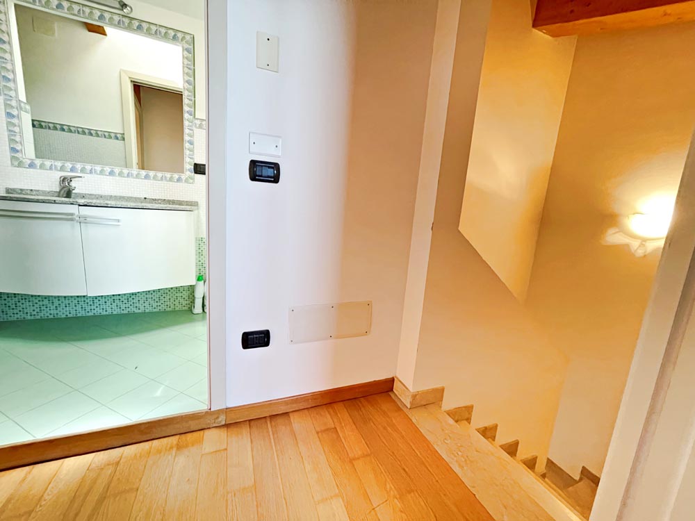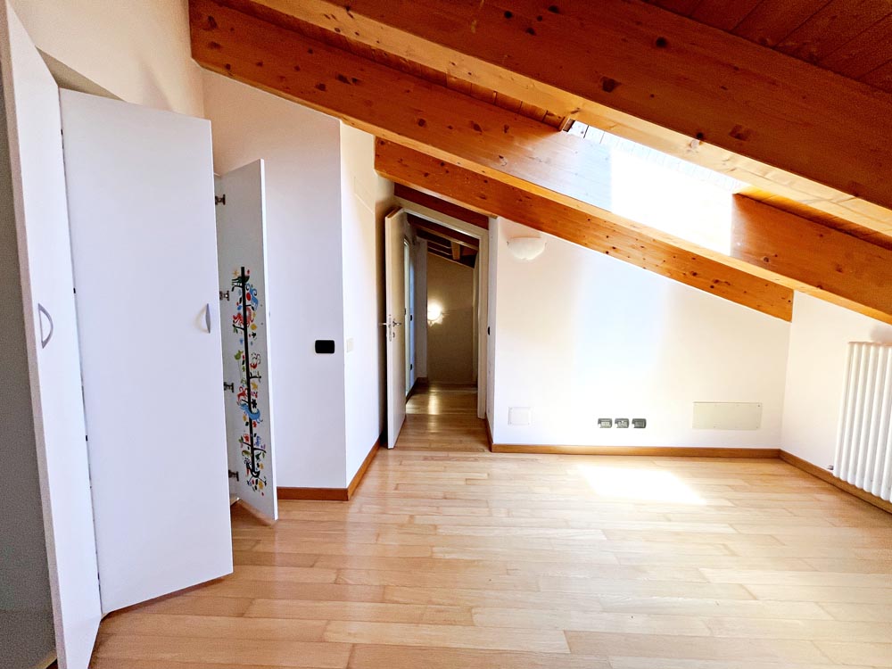 Salendo le scale interne accediamo alla zona notte con due camere da letto di cui una con cabina armadio ed un bagno sempre finestrato tramite velux, con box doccia.