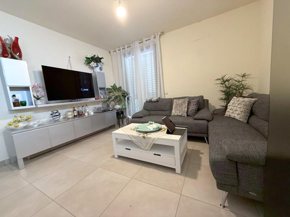 Ingresso su luminosa zona living con cucina open space a seguire accediamo al comodo disimpegno che conduce alla zona notte, composta da ampia camera da letto matrimoniale, seconda cameretta, ampio bagno con box doccia angolare.