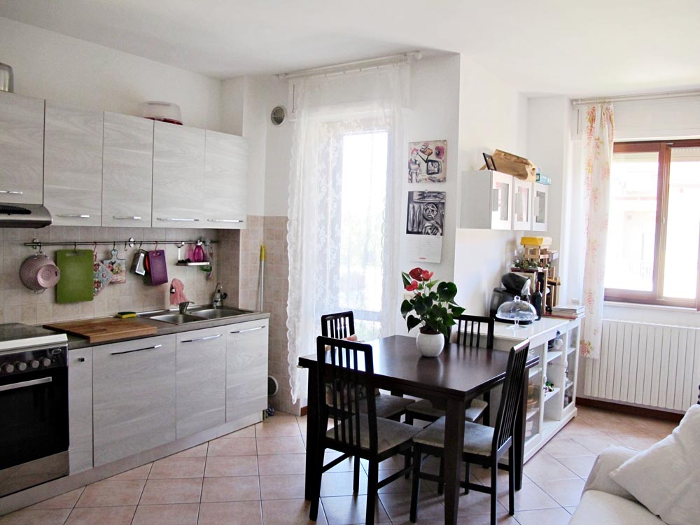 Dall’ingresso, posto al piano primo, tramite disimpegno e portone blindato accediamo a tutto il piano dove troviamo la zona living con cucina a vista open space, un bagno con vasca, ampia camera da letto e terrazzo dove gustare i vostri aperitivi e godere della splendida vista sul verde.