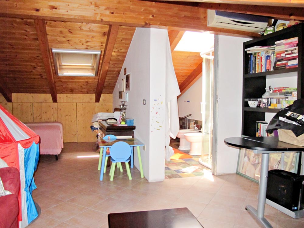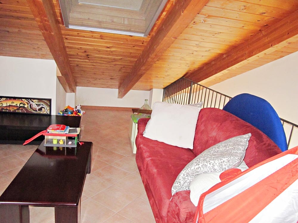 Salendo le scale interne accediamo al piano superiore dove troviamo un ampio spazio per una seconda camera o studio con bagno con box doccia.