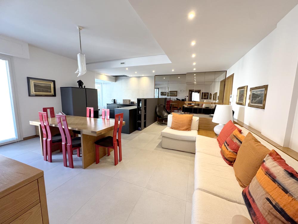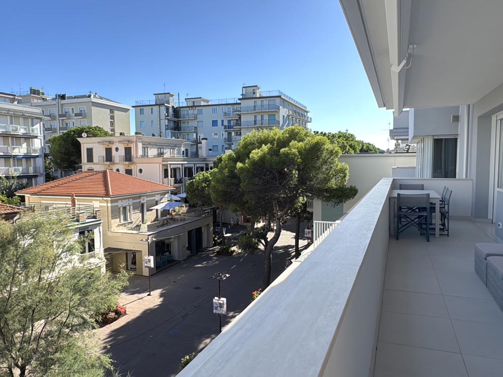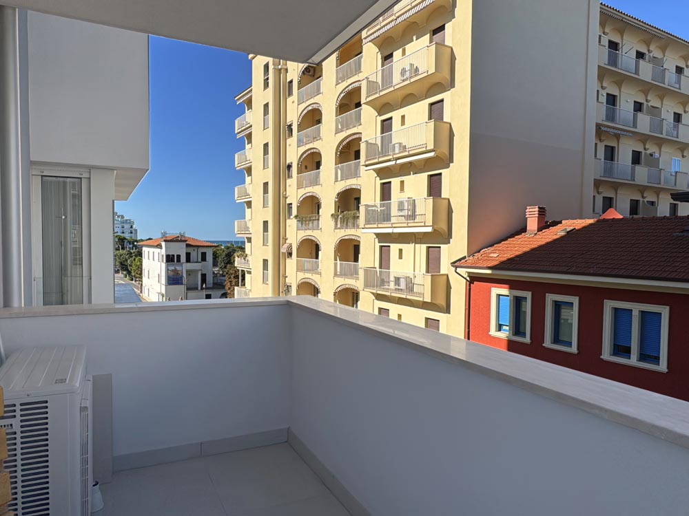 Completamente ristrutturato nel 2024 sia internamente che esternamente, composto da ingresso su spazioso living con cucina a vista, affacciato su un ampio balcone ad angolo con vista mare e viale Ceccarini.