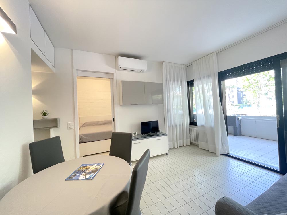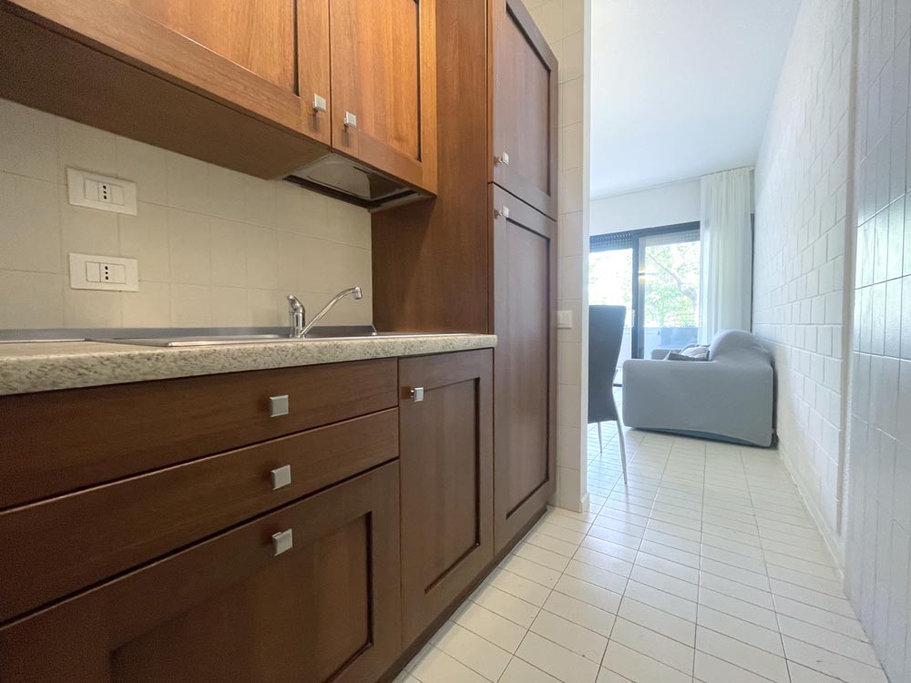 In condominio degli anni ’80  grazioso bilocale  con soggiorno, cucinotto, ampio terrazzo esposto a Nord Ovest  dove si può posizionare anche un tavolo per godersi attimi di relax nelle ore del tramonto, camera matrimoniale e bagno finestrato con box doccia.