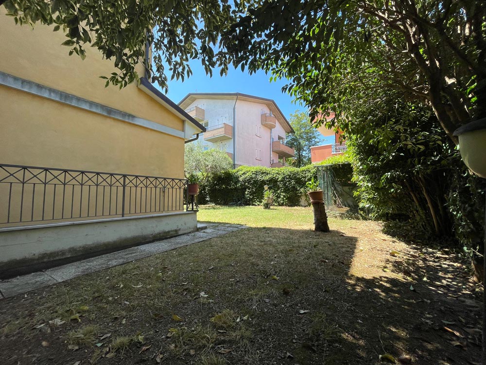 Dal giardino si può accedere comodamente al garage di circa 20 mq con basculante elettrica.