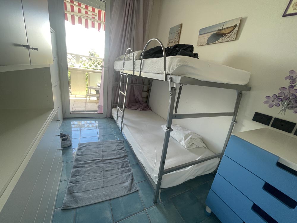 Zona notte composta da camera matrimoniale, camera singola con letto a castello, ulteriore balcone con lavatrice, bagno finestrato con box-doccia e posto auto al piano terra.