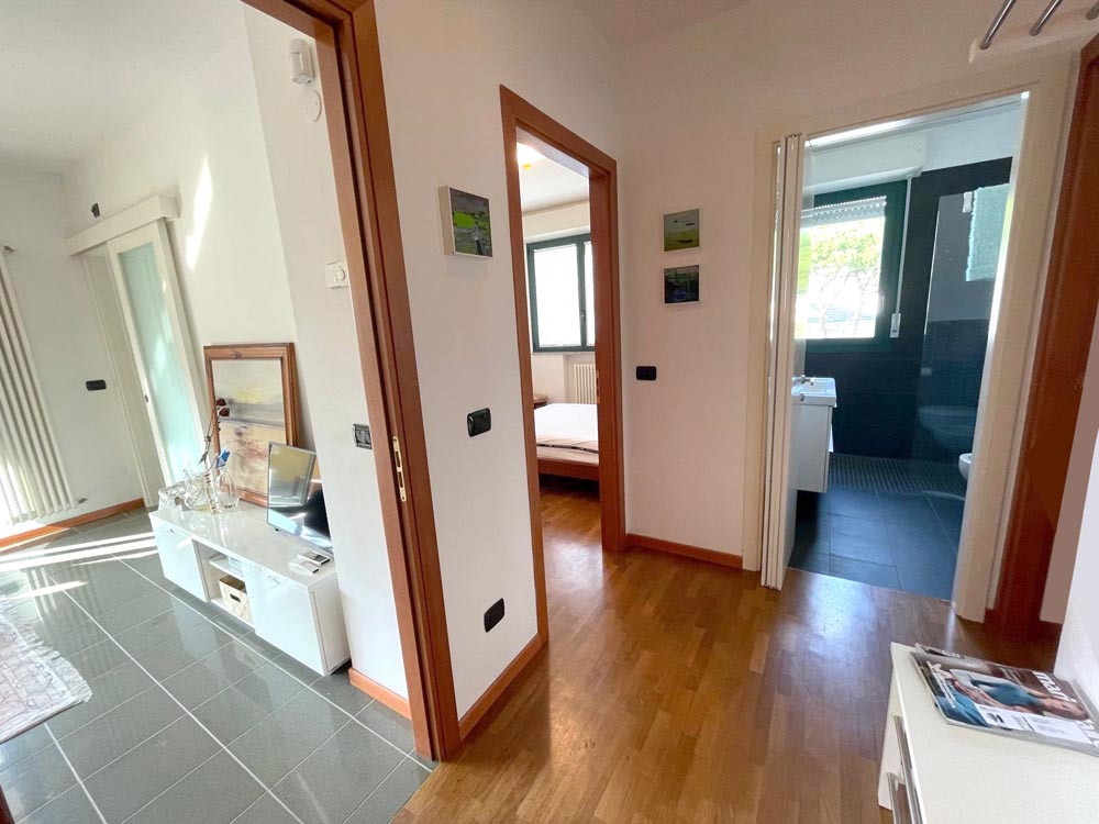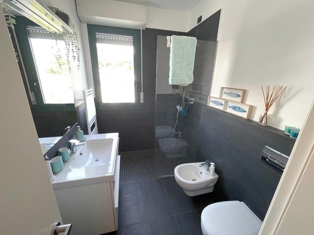 A servizio della zona notte troviamo primo bagno ospiti finestrato, con box-doccia in cristallo e seconda toilette ideale come zona lavanderia.