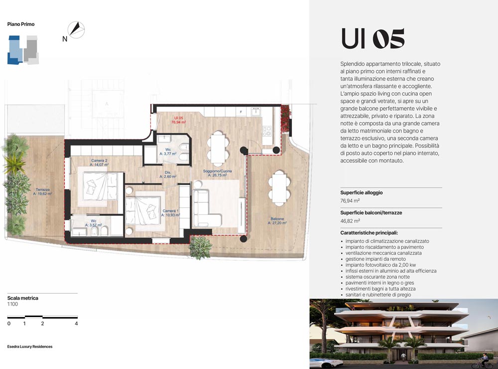 Esedra Luxury Residences non è solo un luogo dove vivere, ma un nuovo stile di vita: eleganza, sostenibilità e tecnologia si incontrano in un contesto esclusivo, a pochi passi dal mare e dai servizi del centro.