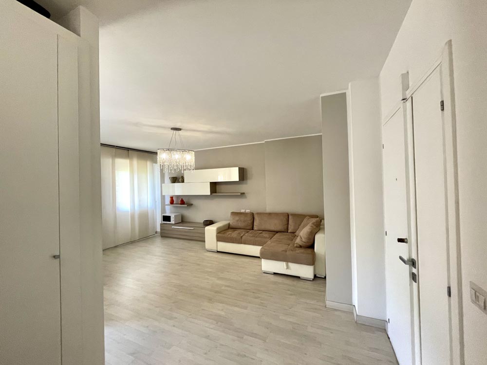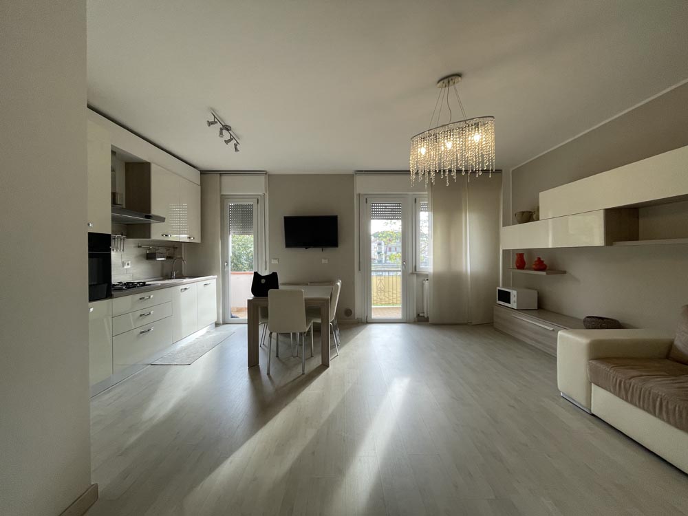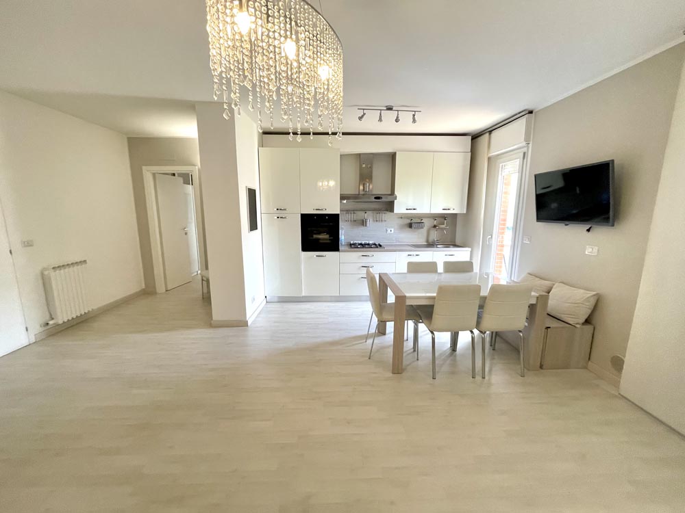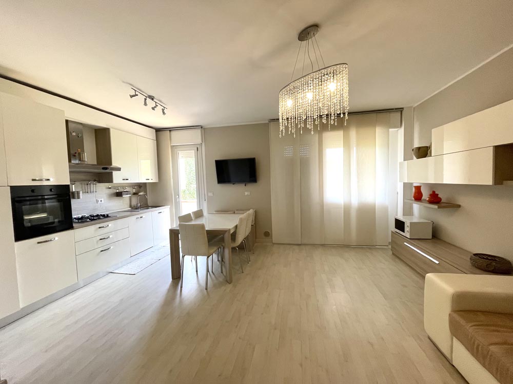 Internamente composto da ingresso su luminoso soggiorno con angolo cottura, affacciato su un balcone, due camere matrimoniali, doppi servizi entrambi finestrati uno con doccia e uno con vasca. Garage di 24 mq. e piccolo giardino ad uso esclusivo.