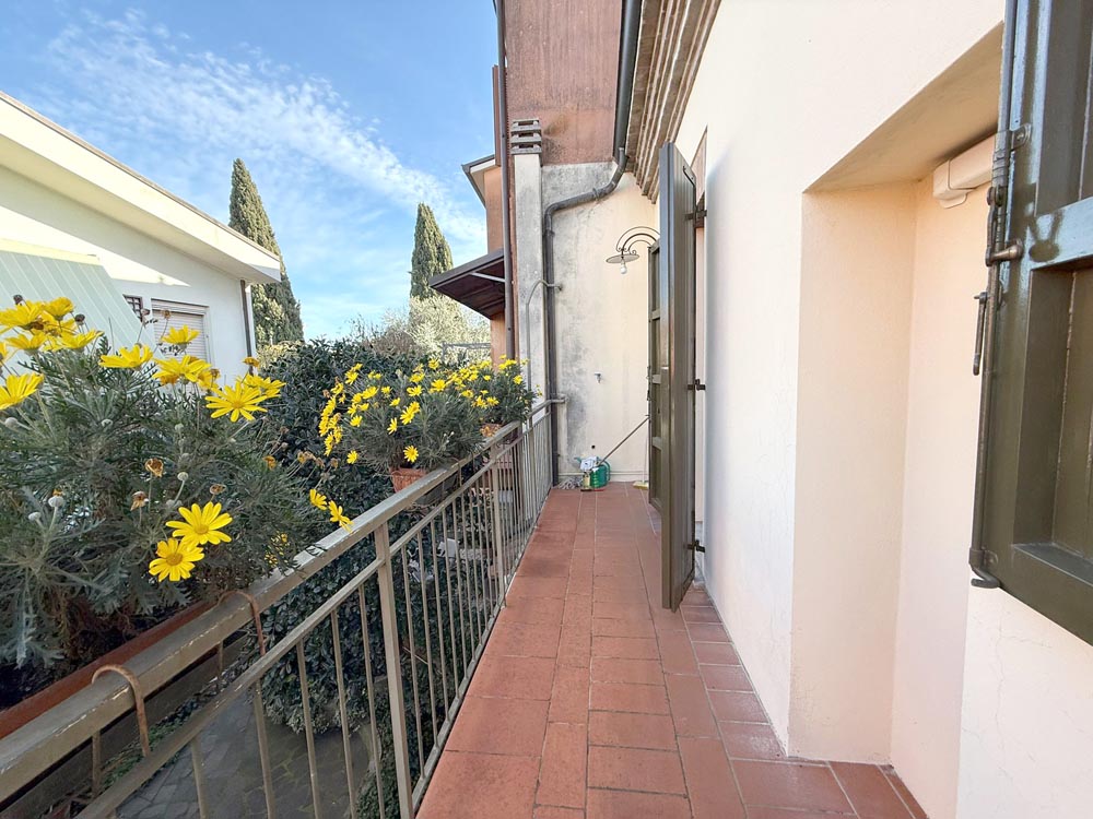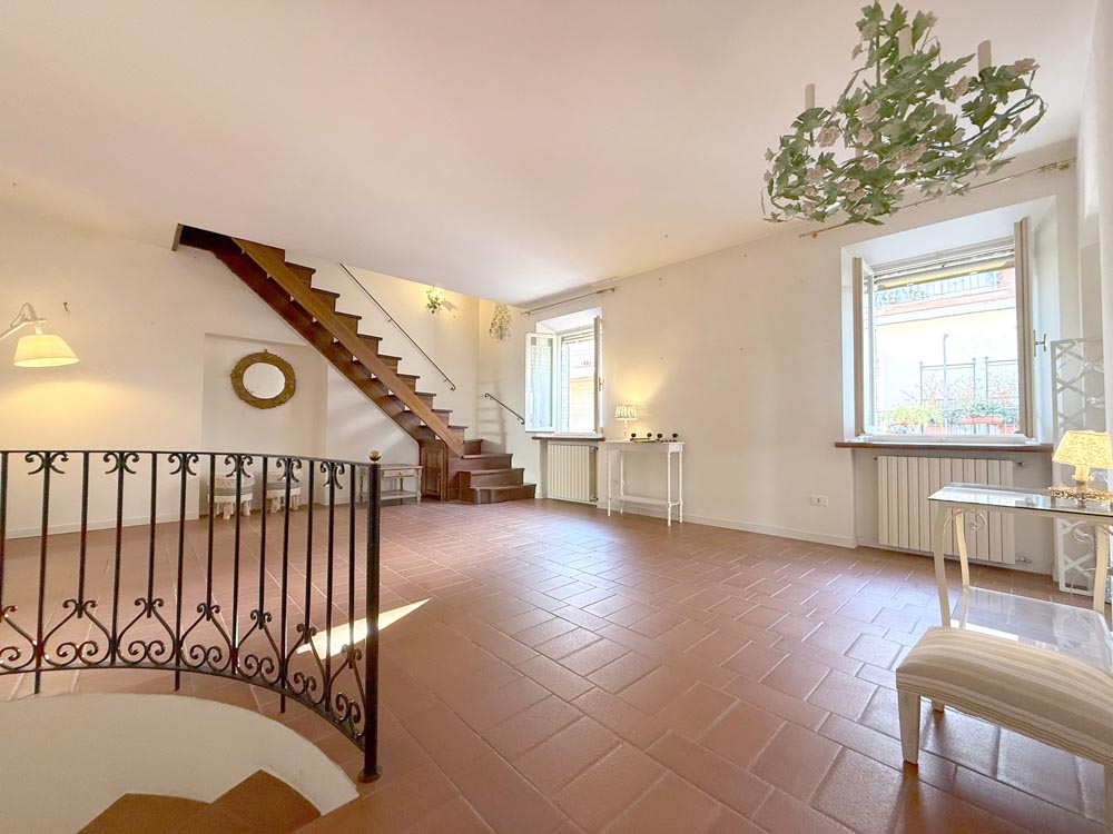 L’ingresso avviene dal piano terra tramite scala interna in muratura che conduce direttamente al soggiorno, completano la proprietà del piano primo due camere da letto matrimoniale di cui una con bagno en suite, un secondo bagno di servizio e una cucina separata con accesso a balcone esterno.