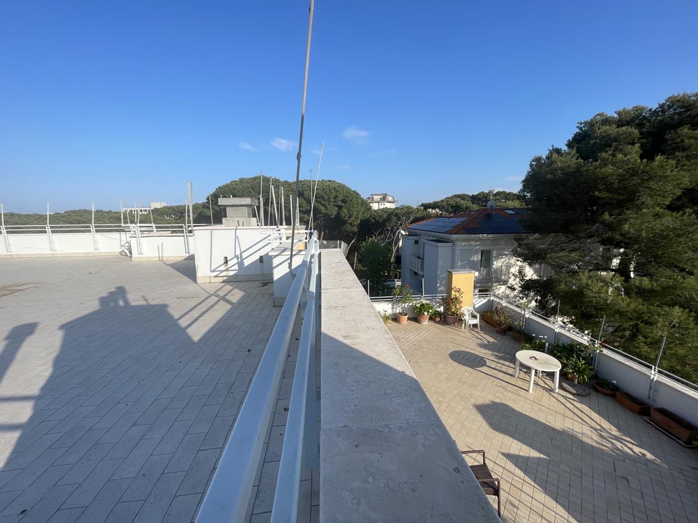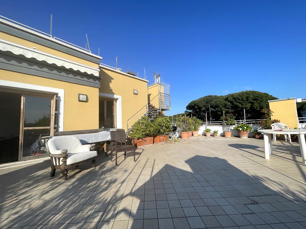 Una scala privata conduce al solarium di proprietà di ben 210 mq, dove cielo e mare diventano il tuo orizzonte quotidiano.