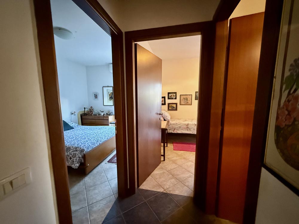 L’appartamento al suo interno si compone di soggiorno spazioso con cucina in nicchia, disimpegno, camera matrimoniale, cameretta e bagno finestrato con box doccia.
