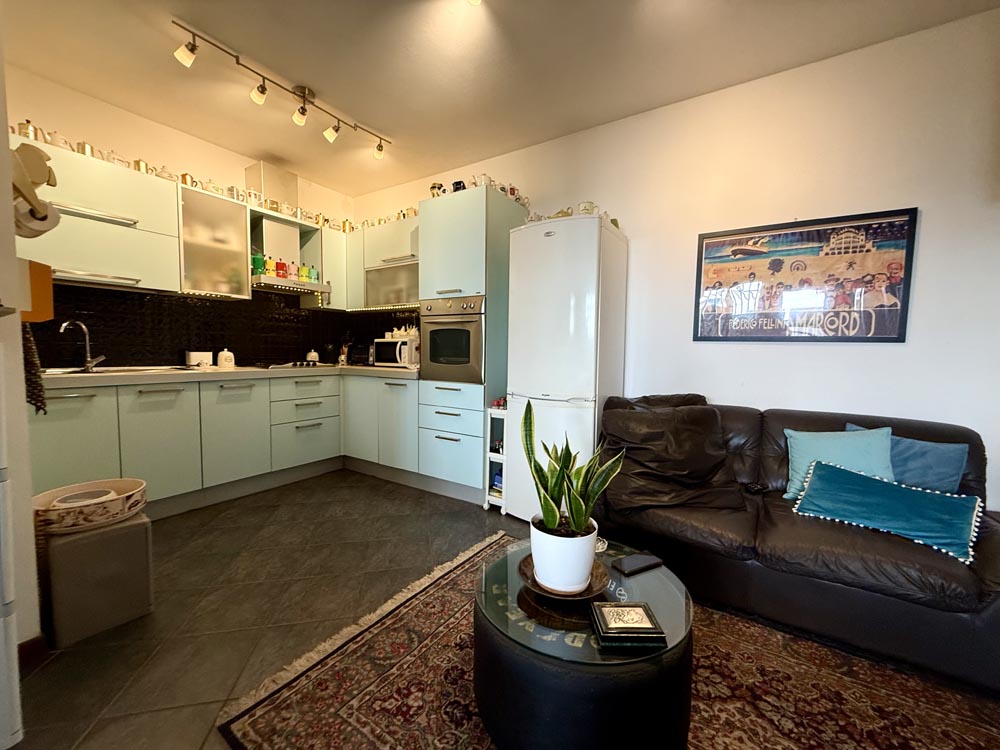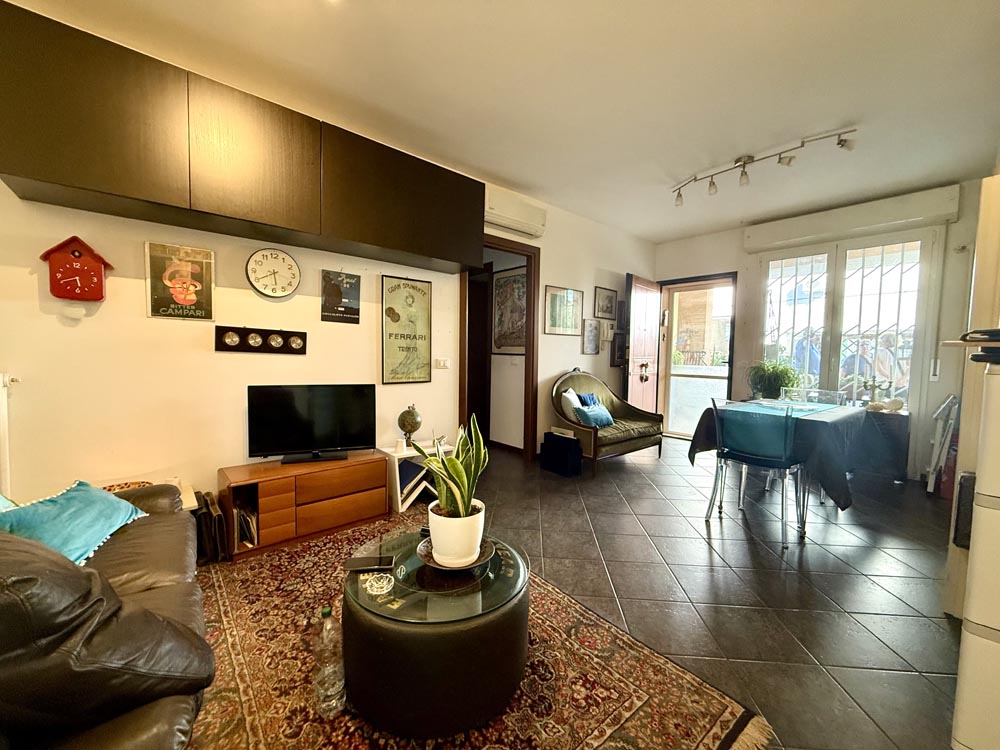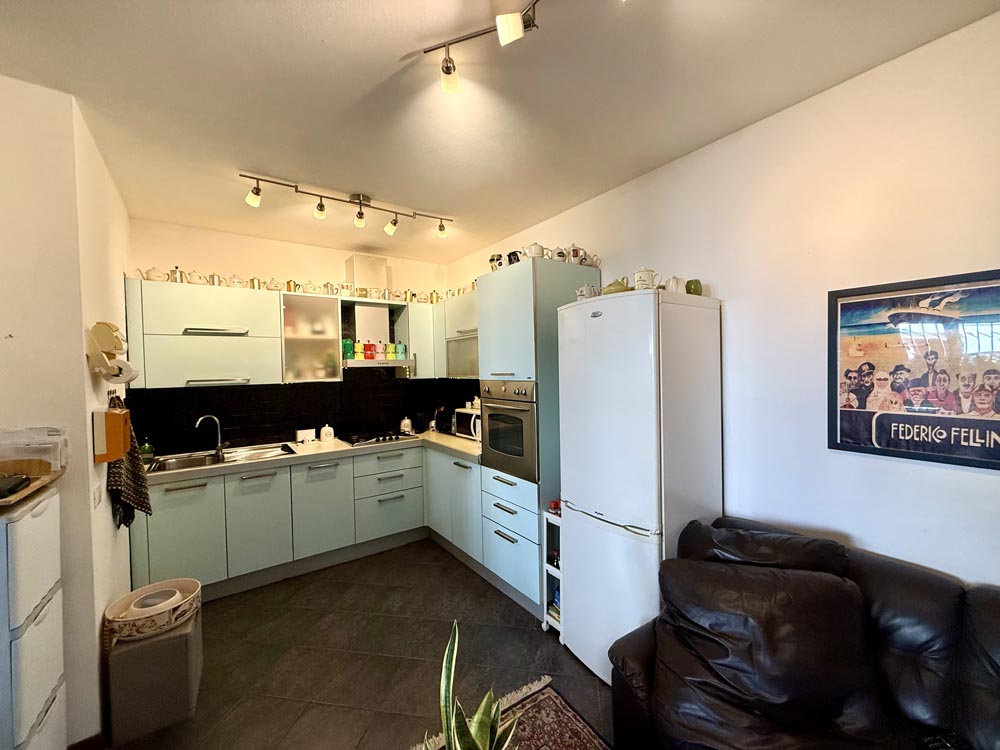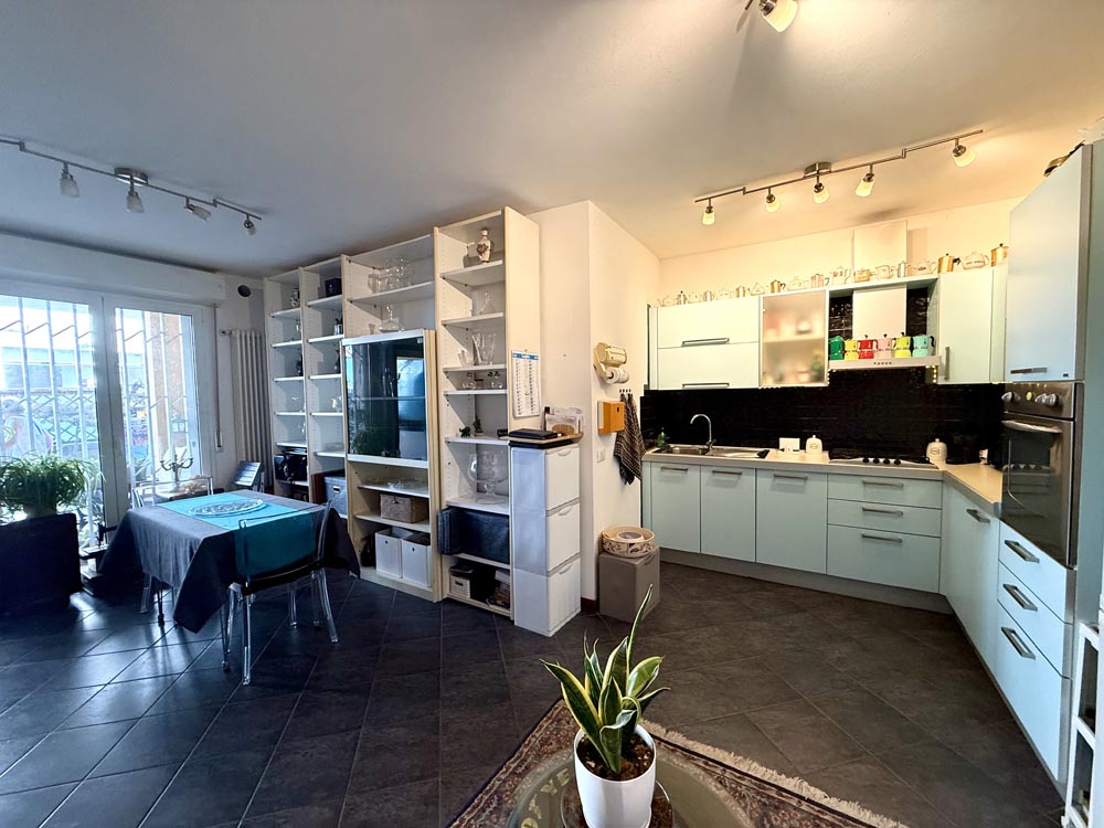 L’immobile si trova in un contesto ben abitato, in palazzina di c.a. 10 unità e dispone di un ampio garage di oltre 20 mq al piano seminterrato.