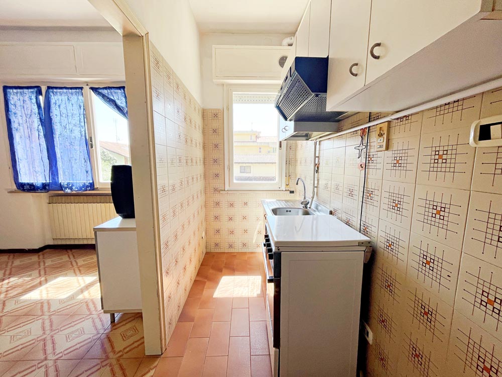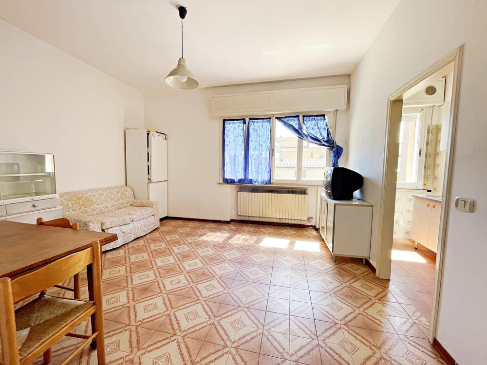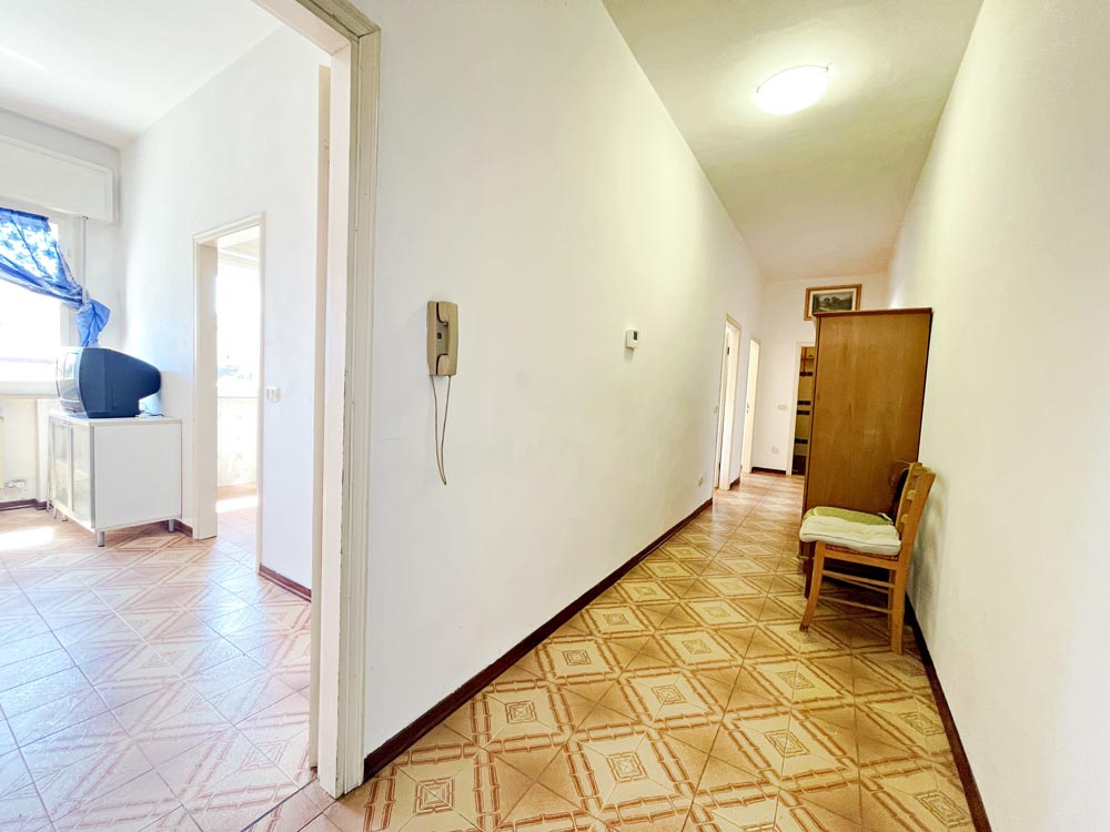 L’appartamento è così composto, ingresso su ampio corridoio che conduce al luminoso soggiorno con cucinotto finestrato.