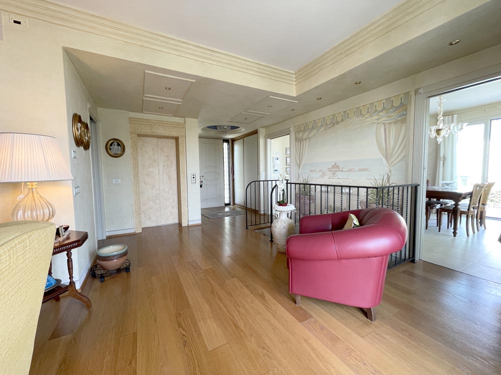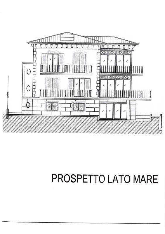Elegante Villa affacciata sul mare con due appartamenti sono disposti uno al piano rialzato e uno al piano primo.La casa è sviluppata su un lotto di circa 650 mq, ed è composta da interrato dove troviamo i garage, un piano seminterrato con lavanderia e tavernetta, piano rialzato appartamento di circa 100 mq. circa, e piano primo appartamento di 95 mq circa con mansarda.
